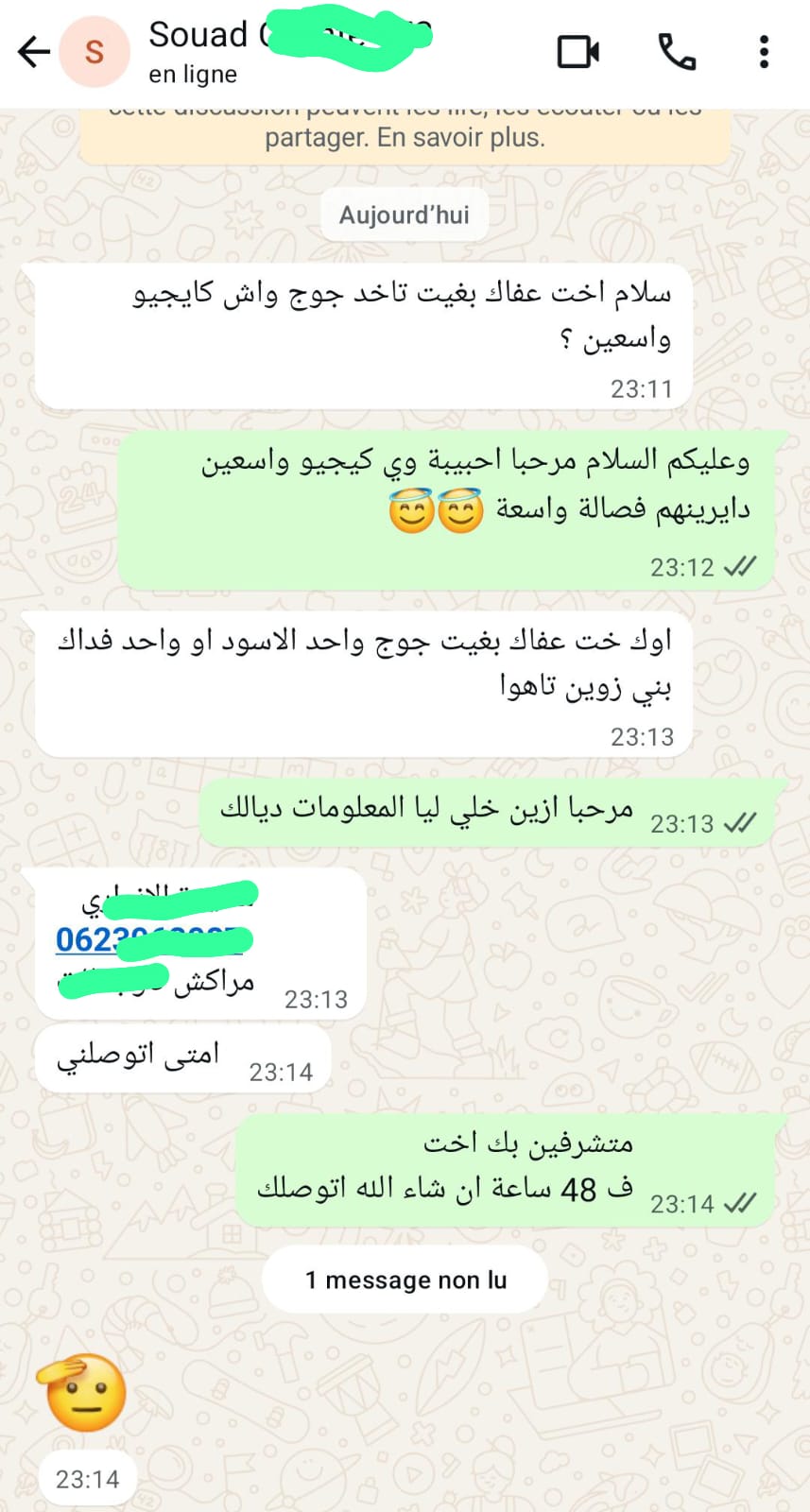 أكيد! عندنا سياسة ارجاع المنتوج كاتشوفي عاد تخلص ليفرور او يمكن لينا نبدلوه لك فمدة ثلاثة ايام (ملحوظة ان المنتج يبقى كيما توصلتي به او تاكد من المقاس ديالك منقبل)